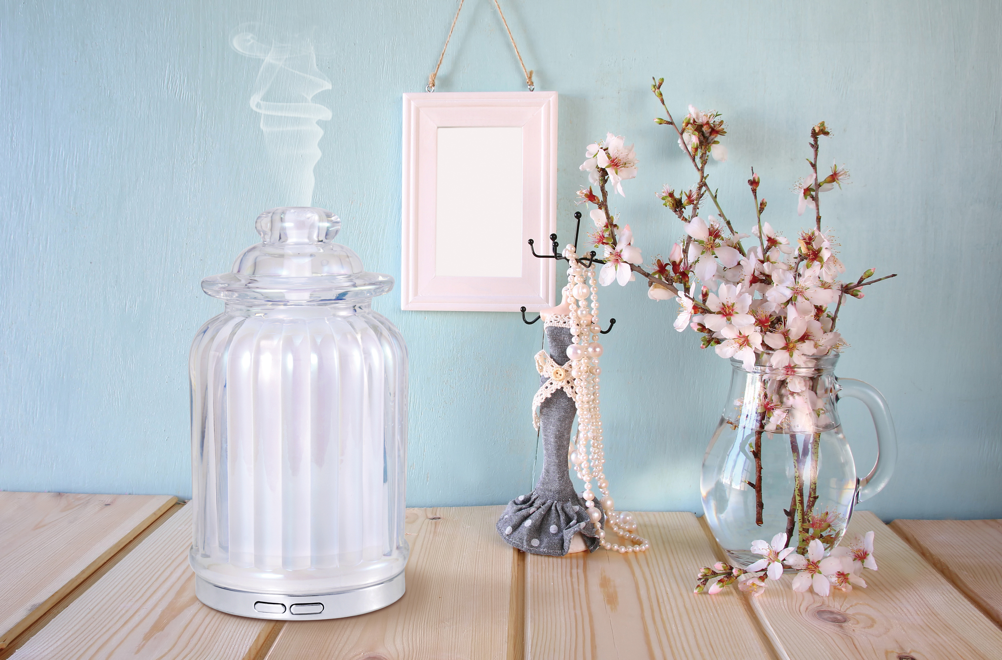 Распыление водяной пыли происходит сразу, стоит только включить диффузор.Работает бесшумно.