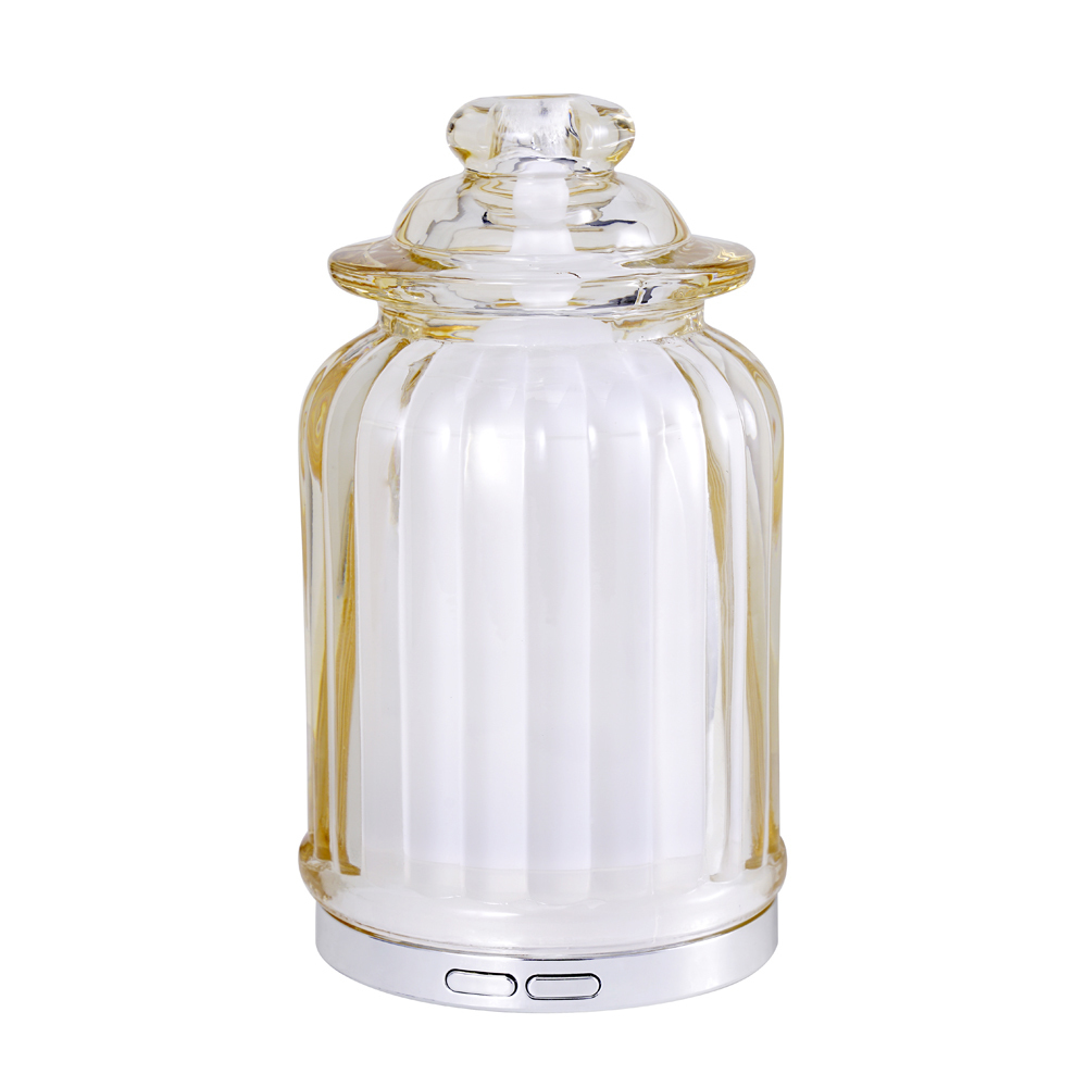 Новый аромадиффузор HWI0005, внешне напоминающий баночку для хранения сладостей, выполнен из толстостенного стекла и оснащен мягкой подсветкой в двух форматах - теплое ламповое свечение и белый холодный свет.