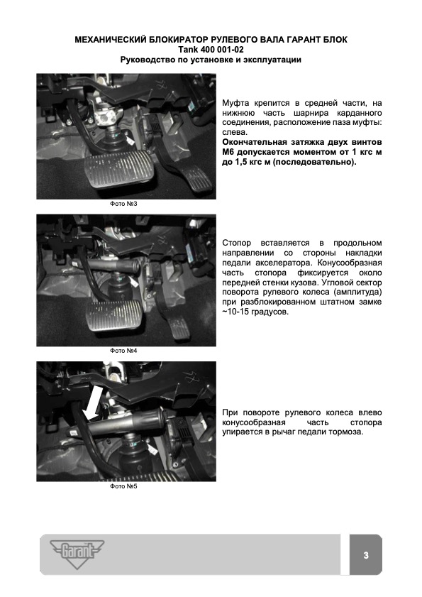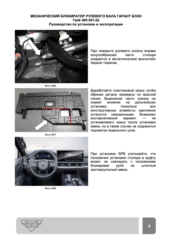Блокиратор рулевого вала Гарант Блок Люкс 001.X/f/s/k для TANK 400 c 2025 г.