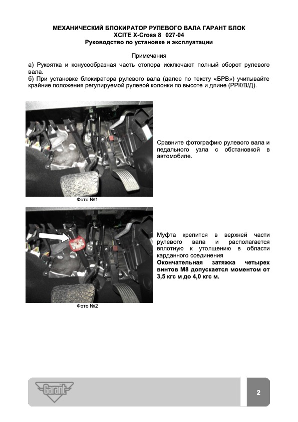 Блокиратор рулевого вала Гарант Блок Люкс 027.X/f для XCITE X-Cross 8 c 2024 г. РВ-ф27 - это надежный блокиратор рулевого вала, защищающий автомобиль от всех известных способов вскрытия.
