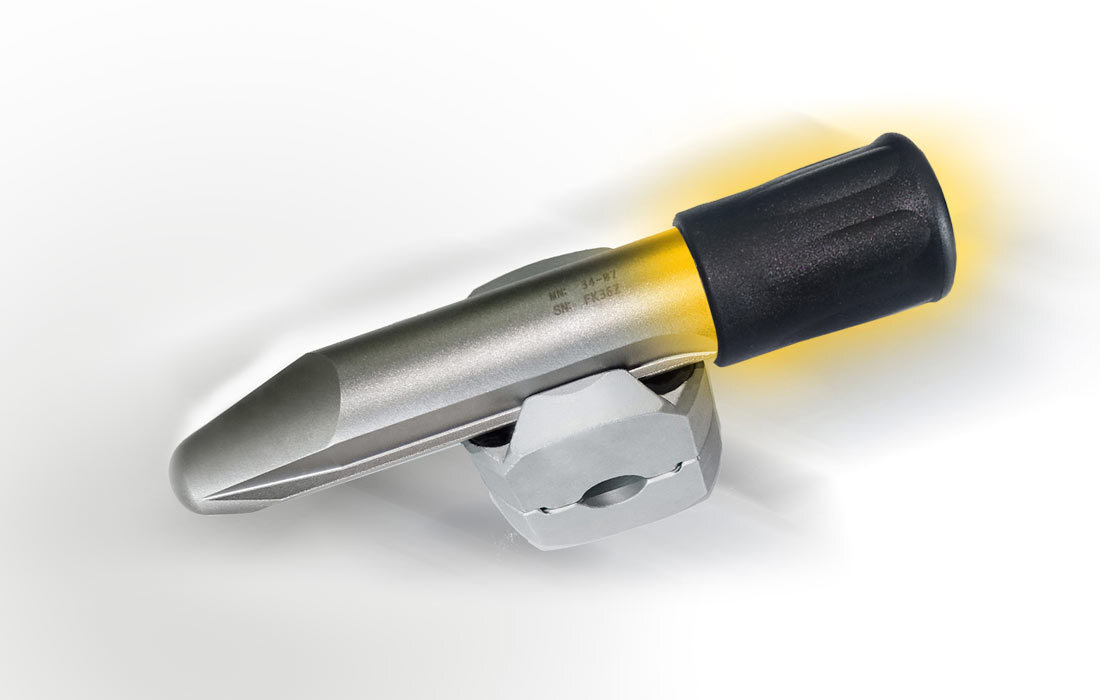 Для удобства использования, в стопор добавлена рукоятка из эластичного ПВХ, она не нагревается, не замерзает и не дает стопору проскальзывать в руке владельца.