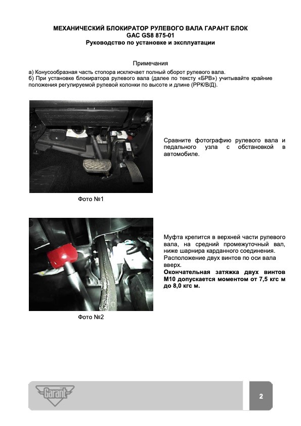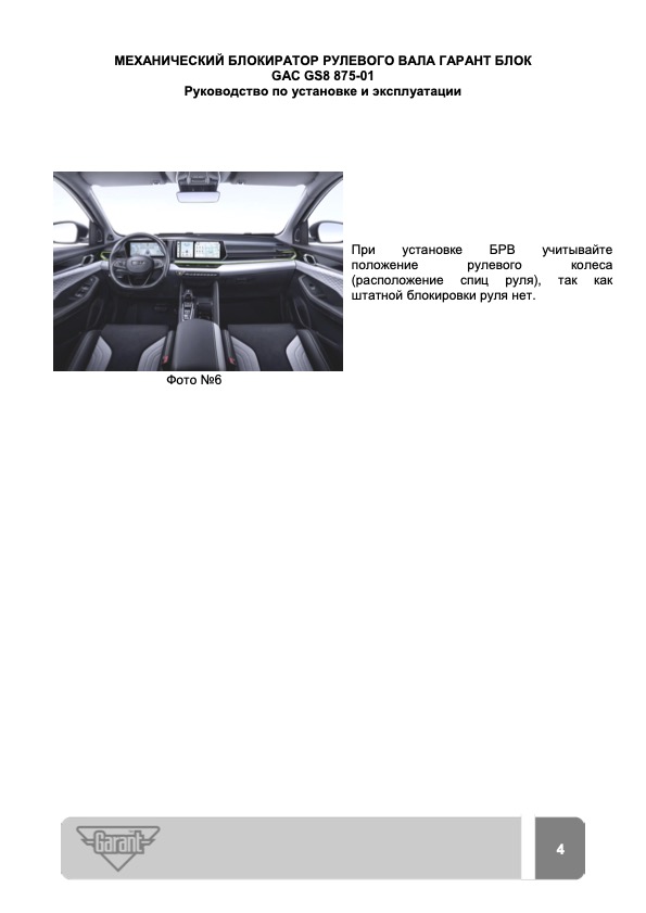 Блокиратор рулевого вала Гарант Блок Люкс 875.X/f для GAC GS8 c 2024 г. - это надежный блокиратор рулевого вала, защищающий автомобиль от всех известных способов вскрытия.