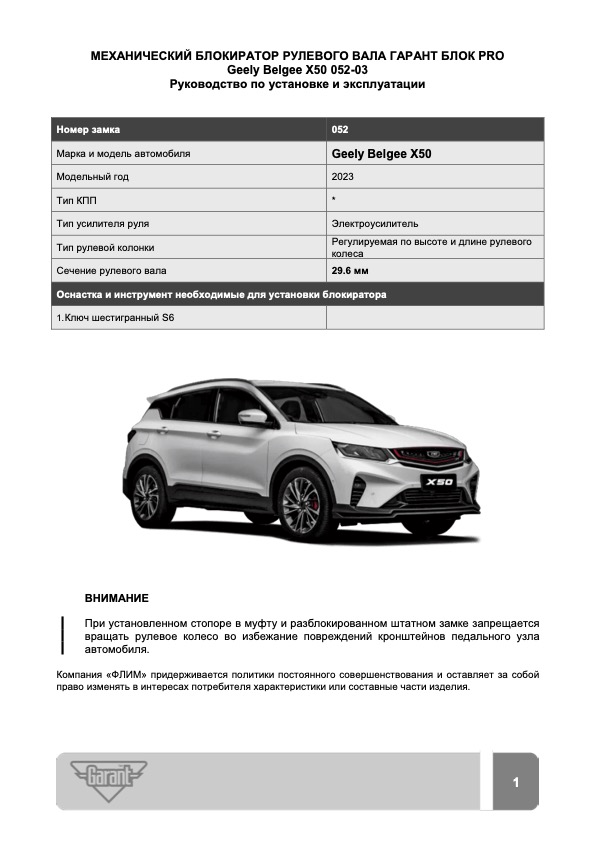 «Гарант Блок PRO» для BELGEE X50 c 2023 г. РВ-ф29,6 – это усиленный блокиратор рулевого вала, собравший в себе новейшие инженерные решения. Благодаря высокому уровню криминальной стойкости успешно сопротивляется всем известным механическим способам воздействия.