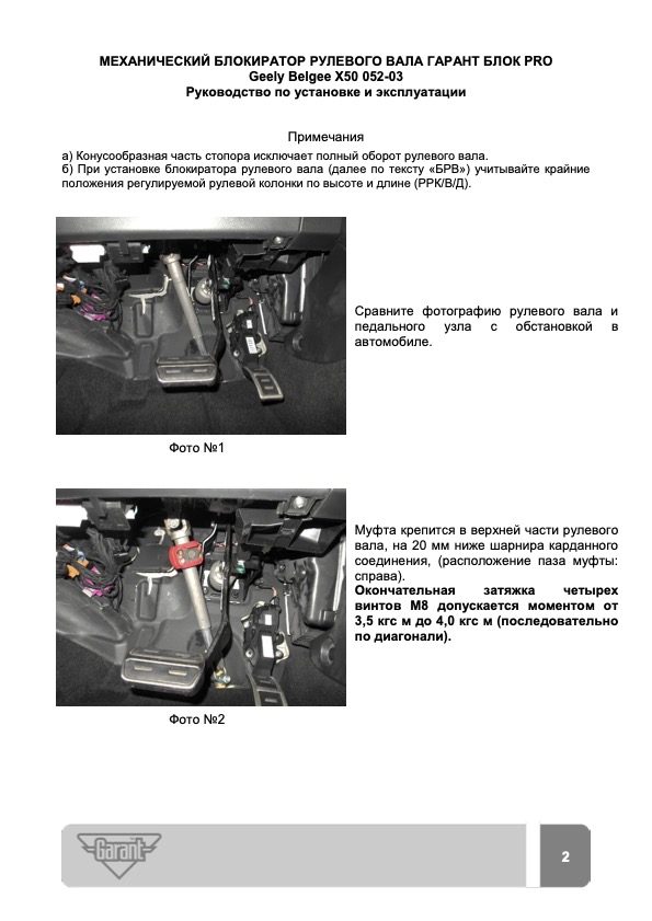 Блокиратор рулевого вала Гарант Блок PRO для BELGEE X50 c 2023 г. РВ-ф29,6 мм