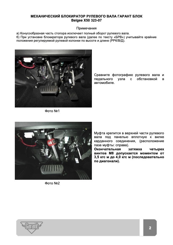 «Гарант Блок PRO» для BELGEE X50 c 2023 г. РВ-ф30 мм – это усиленный блокиратор рулевого вала, собравший в себе новейшие инженерные решения. Благодаря высокому уровню криминальной стойкости успешно сопротивляется всем известным механическим способам воздействия.