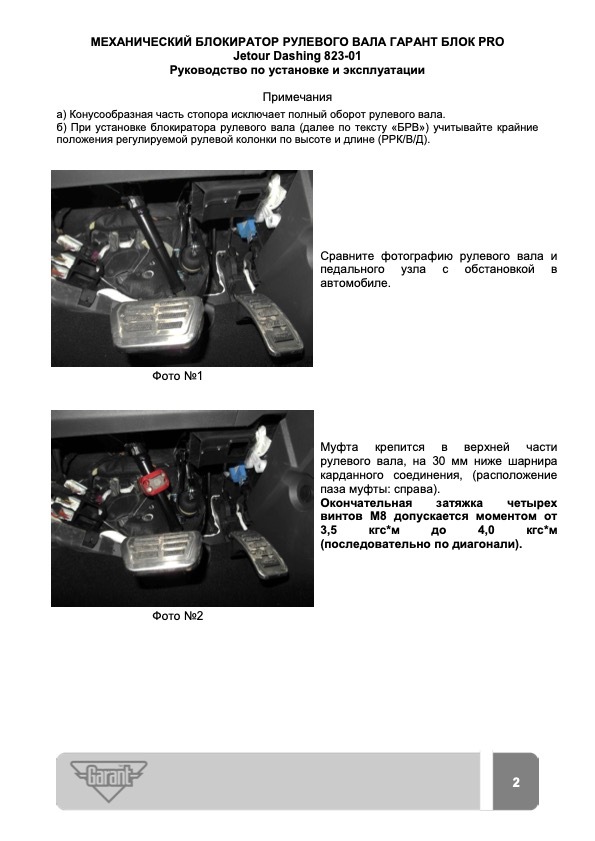 Блокиратор рулевого вала Гарант Блок PRO для JETOUR DASHING c 2023 г. РВ-ф30,1мм