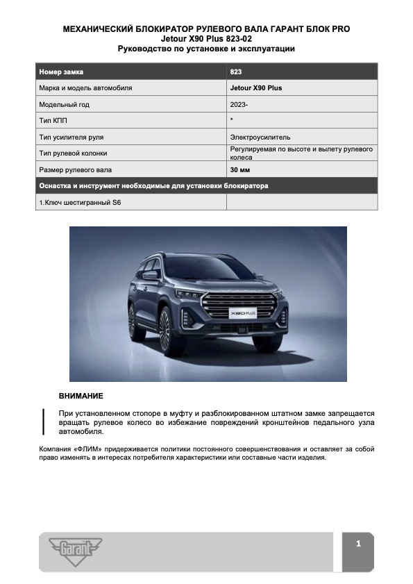 Гарант Блок PRO для JETOUR X90 PLUS c 2023 г. РВ-ф30мм – это усиленный блокиратор рулевого вала, собравший в себе новейшие инженерные решения. Благодаря высокому уровню криминальной стойкости успешно сопротивляется всем известным механическим способам воздействия.