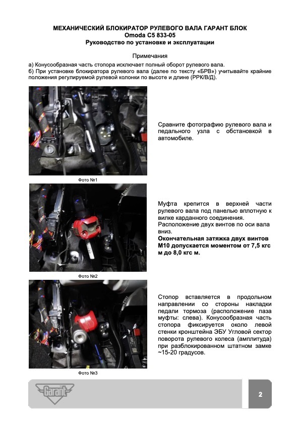 Блокиратор рулевого вала Гарант Блок PRO для OMODA C5 c 2022 г. РВ-ф24,5мм