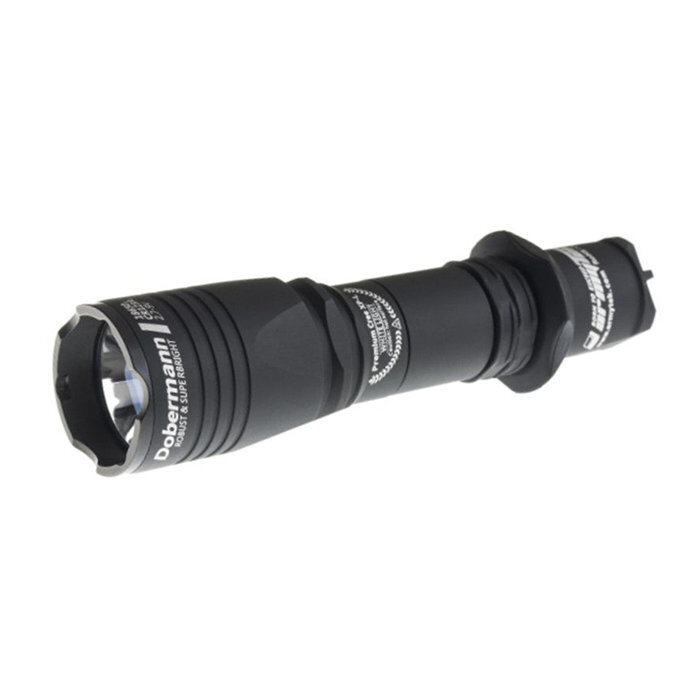 Armytek Doberman — это компактный, простой и надежный подствольный фонарь. По сравнению с серией фонарей Predator обладает меньшим количеством режимов работы и меньшим размером отражателя, в следствие чего отличается меньшей дальнобойностью (314 метров) и более широким лучом.
