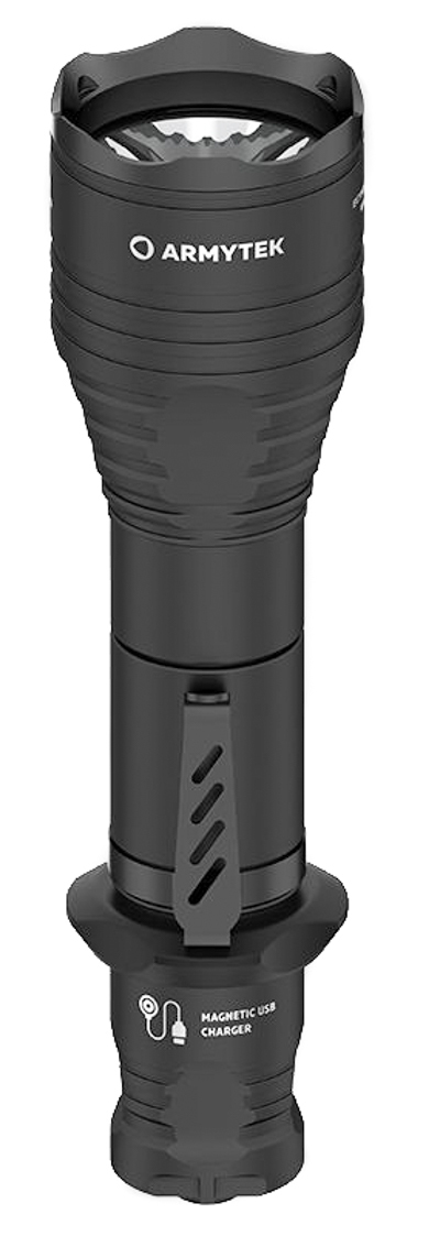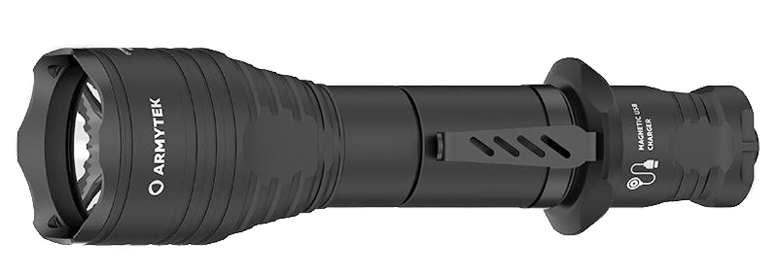 Большое центральное пятно и широкая боковая засветка делают Viking Pro лучшим решением для ближней и средней дистанции с максимальной дальностью до 284 метров. Широкий луч позволяет комфортно выцеливать объекты, находящиеся на небольшом расстоянии в 50-70 метров. Яркость светового потока при этом составляет впечатляющие 2050 люмен. Для зарядки элемента питания не нужно приобретать дополнительное устройство. Аккумулятор заряжается внутри фонаря от любого источника питания с выходом USB.