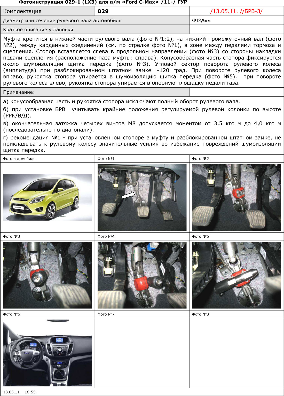 Блокиратор рулевого вала Гарант Блок Люкс 029 для FORD C-MAX c 2011 года - это семейство механических противоугонных устройств, блокирующих рулевой вал автомобиля.