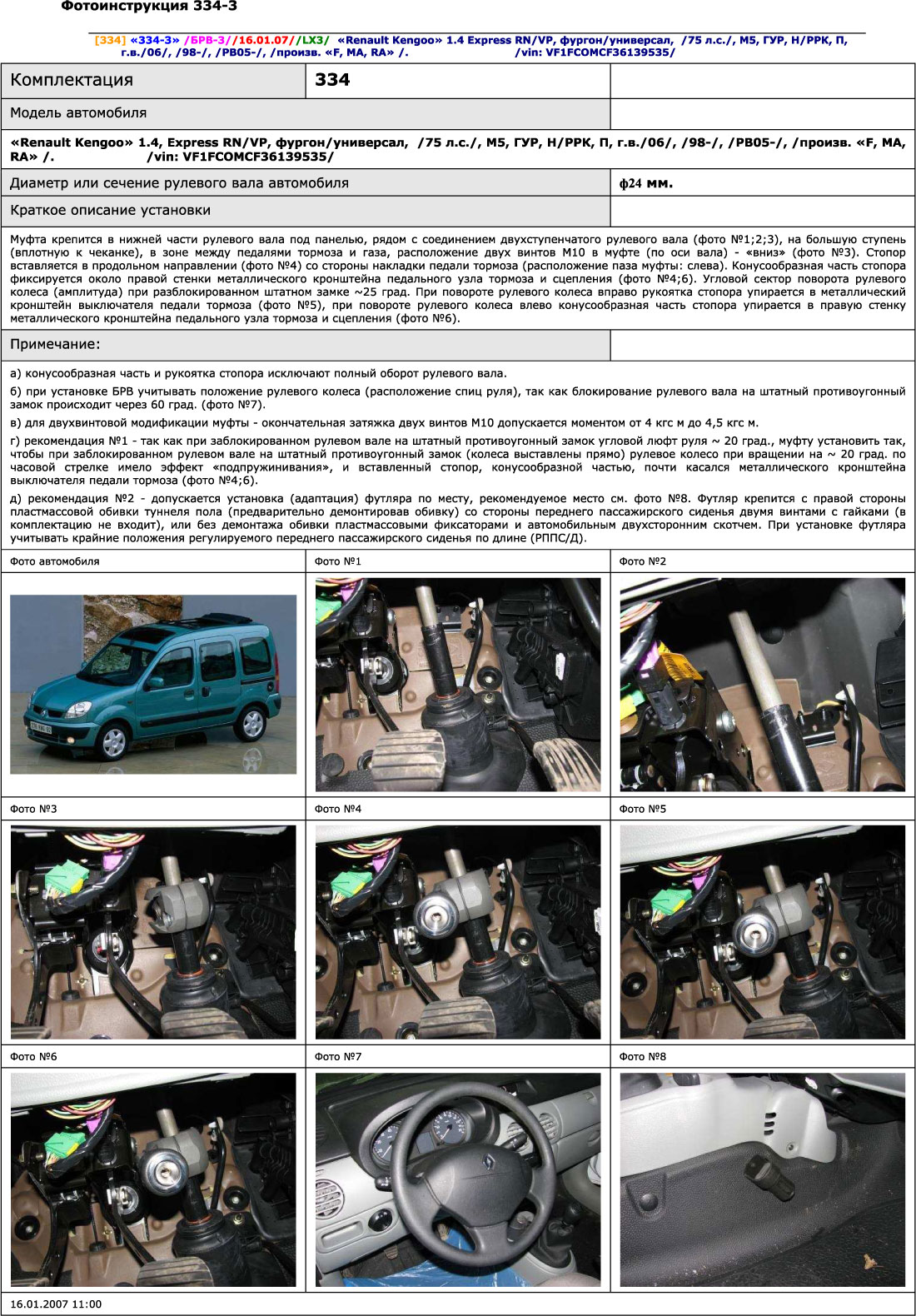 Блокиратор рулевого вала Гарант Блок Люкс 334 для RENAULT KANGOO c 1998 года - это семейство механических противоугонных устройств, блокирующих рулевой вал автомобиля.