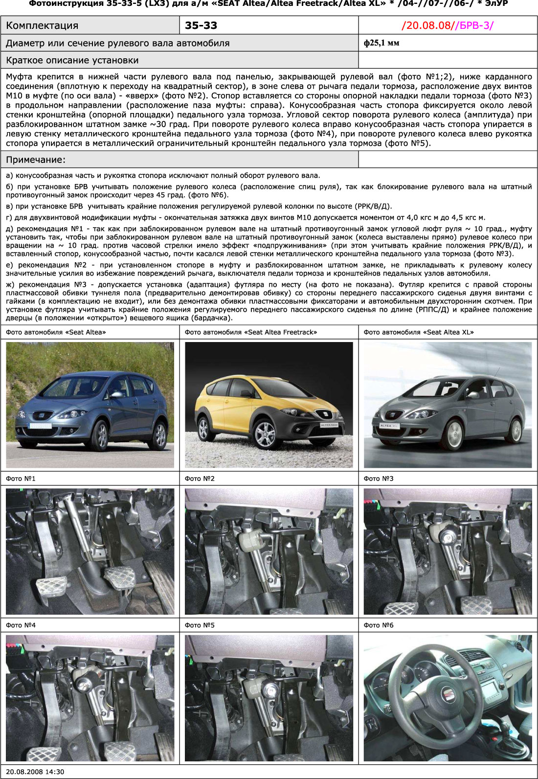 Блокиратор рулевого вала Гарант Блок Люкс 35-33 для SEAT ALTEA XL c 2006 года - это семейство механических противоугонных устройств, блокирующих рулевой вал автомобиля.
