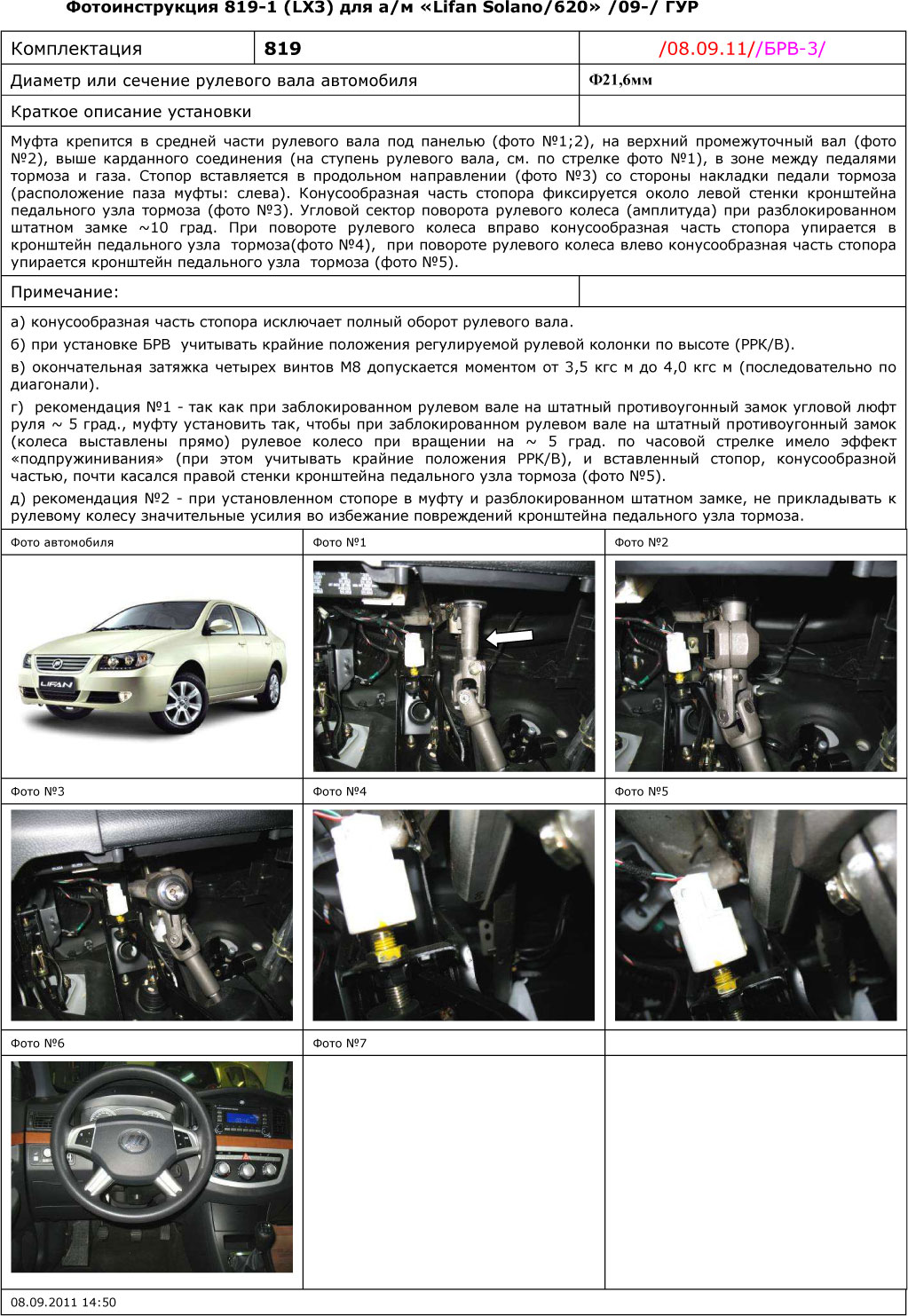 Блокиратор рулевого вала Гарант Блок Люкс 819.E для LIFAN SOLANO c 2009 года - это семейство механических противоугонных устройств, блокирующих рулевой вал автомобиля.