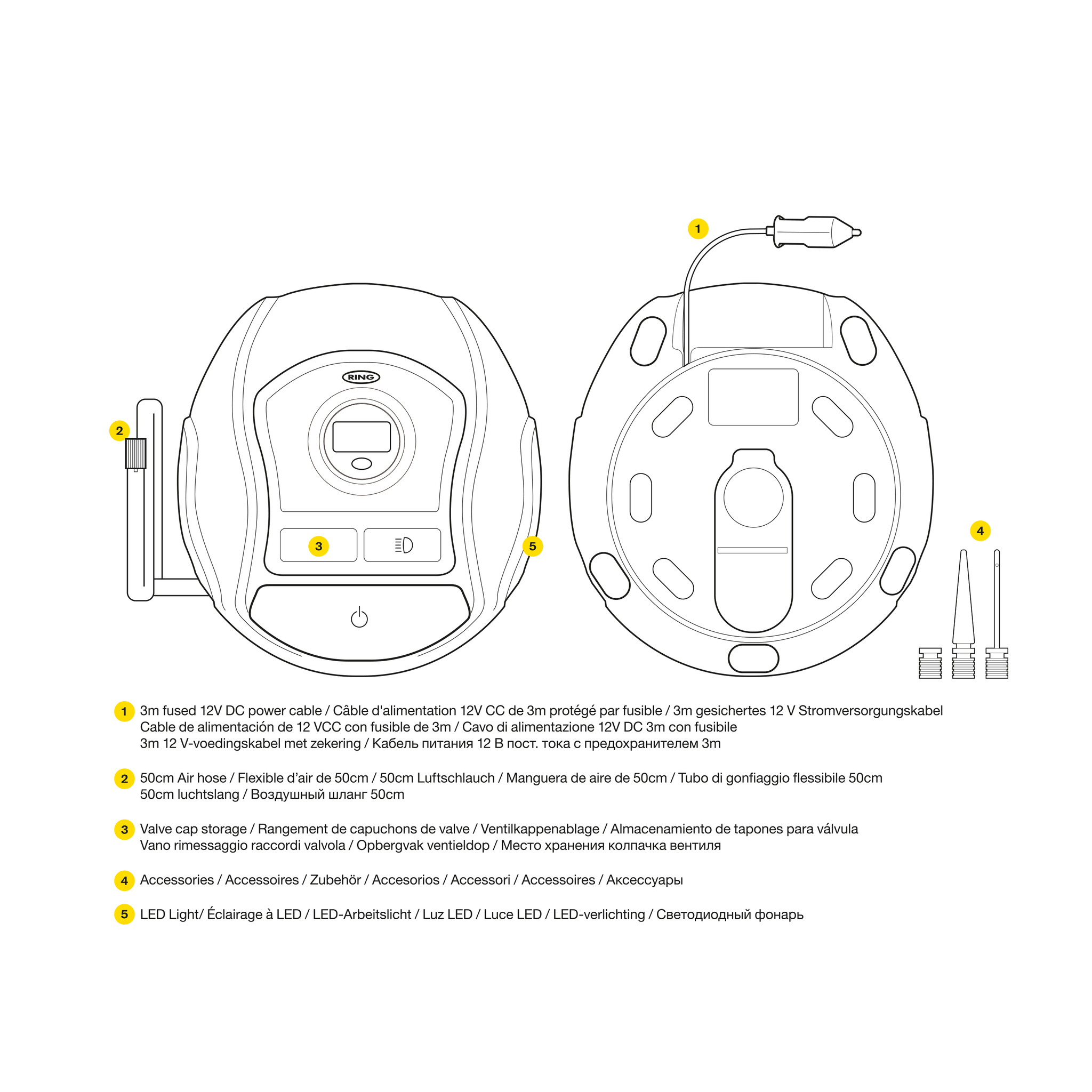 Цифровой воздушный компрессор со светодиодным фонарем Ring Automotive отличается эргономичностью, компактными габаритами и уникальным эволюционным дизайном - удобно эксплуатировать и хранить.