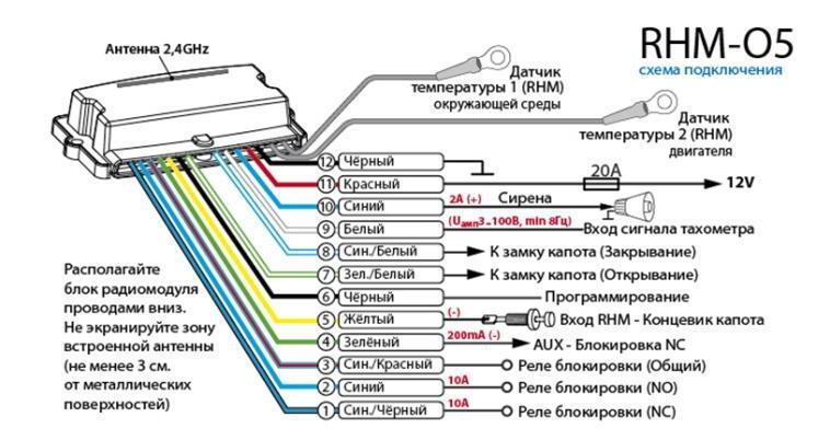 Расширенные технические возможности позволяют использовать многофункциональный модуль Pandora RHM-05 для контроля над состоянием концевика капота, электромеханическое управление замком капота (реализуются фирменные алгоритмы работы с учетом состояния концевика капота) и управление автомобильной сиреной. В этом заключается главное отличие устройства от реле Pandora HM-05, которое используется исключительно для управления электромеханическим замком капота. Кроме того, предусмотрен дополнительный аналоговый вход контроля сигнала тахометра (применяется для дистанционного запуска двигателя на машинах, где отсутствует он в can-шине). Благодаря такому функционалу, RHM-05 с успехом может заменить модуль расширения RMD-06.