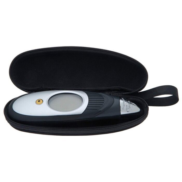 Манометр снабжен уникальным вращающимся наконечником, который легко поворачивается на 360 градусов, что позволяет повернуть дисплей с синей подсветкой к вам лицом из любого положения. В комплект входит чехол для удобного хранения.